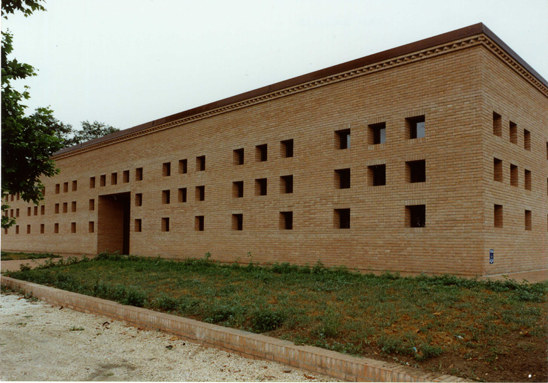 Il fabbricato occupa una sup.cop.di mq.513,su un ampio lotto di mq.1600. L'edificio di forma pressochè quadrata è costruito con mattoni lavorati a "faccia a vista" riproponendo una tipologia che intende adattarsi, per uso dei materiali,all'edilizia circostante e che pur volendo segnalare la propria presenza in modo significativo e netto, nello stesso tempo si propone come elemento continuativo del paesaggio sia dal punto di vista fisico che temporale.